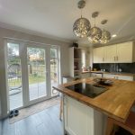 Kitchen/Breakfast Room 15'9 x 9'5 - Modern range of wall and base units, solid wood worktop with inset single drainer bowl and a half sink unit with mixer tap. Space and point for an American style Fridge freezer. Space and plumbing for dishwasher. Built in electric oven. Island unit with solid wood worktop with inset 4 ring induction hob. Coved ceiling cornice. Inset spotlights and contemporary pendant lighting. Stylish radiator. Double glazed window. Double glazed patio door leading to rear garden.